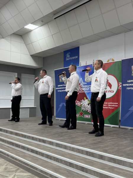5 мая в Витебске дан старт районному патриотическому проекту - марафону "Песни Победы: поём вместе!"Организаторы проекта:- Администрация Первомайского района Витебска;- Первомайский РО РОО "Белая Русь"; - Первомайским РК ОО "БРСМ" Витебска. Участники проекта - творческие группы талантливой молодежи, представителей трудовых коллективов. Завершающим аккордом станет совместное с трудовыми коллективами исполнение песни "День Победы".Актовый зал Витебского филиала "Белтелеком" собрал множество участников и зрителей, создавая атмосферу патриотизма и единства.Выступления творческого коллектива Витебского филиала "Казаки" отличалось не только техническим мастерством, но и глубиной исполнения. Трогательные и мощные номера затронули сердца слушателей, что позволило передать все эмоции и чувства, связанные с темой военной песни и патриотизма. Печать