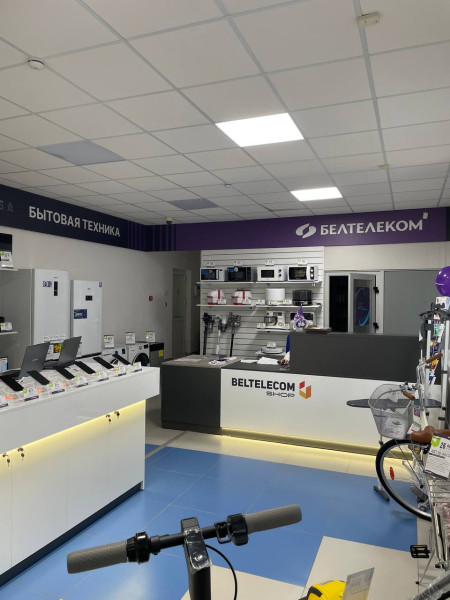 У абноўленым памяшканні кліентаў сустракае ўтульная і прасторная зала, абсталяваная сучаснымі працоўнымі месцамі. Цэнтральным элементам стала вялікая вітрына, дзе прадстаўлены шырокі асартымент тэхнікі і электронікі, якую можна набыць у растэрміноўку да 24 месяцаў.