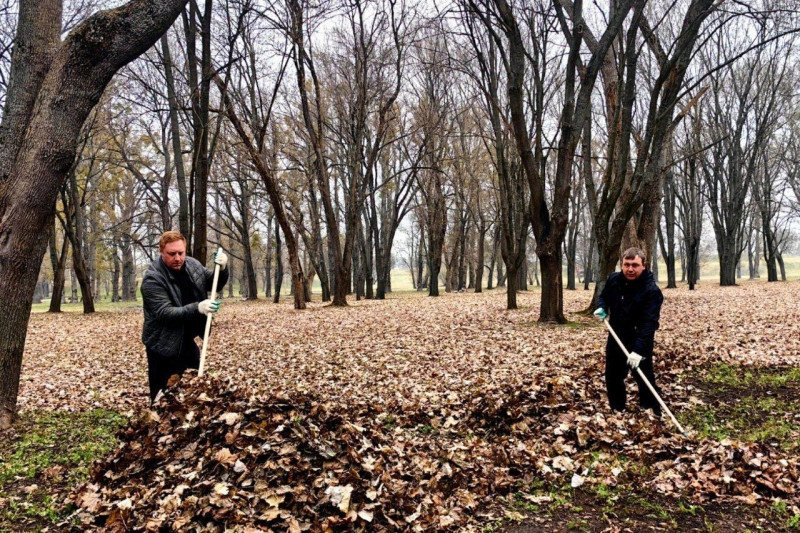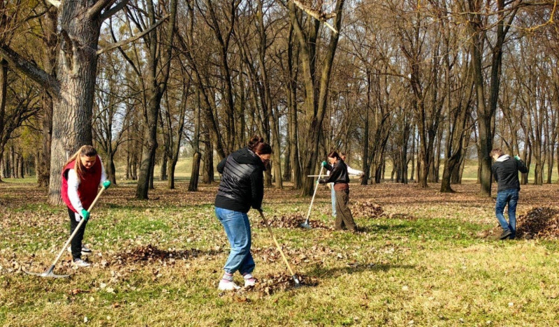 Работники Брестского филиала РУП «Белтелеком» организовали уборку сухой листвы на закрепленной за предприятием территории в Мемориальном комплексе "Брестская крепость-герой".