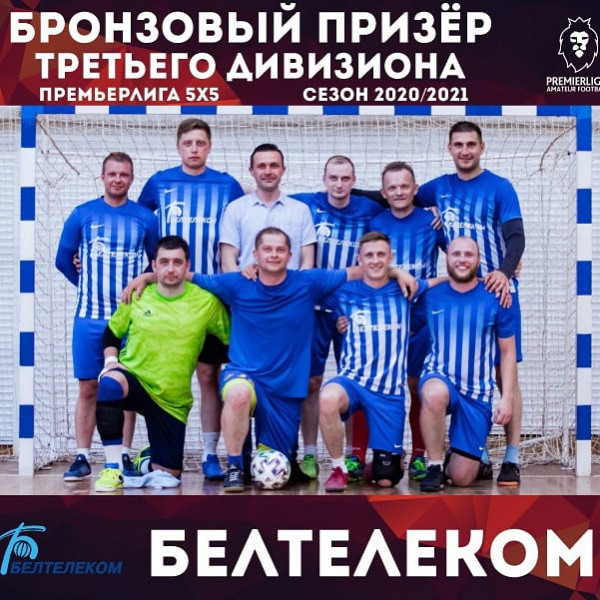 Сборная команда Белтелеком по мини-футболу завоевала третье место в третьем дивизионе «Премьерлиги» 5*5 сезона 2020-2021 гг. Начиная с октября 2020 года работники Могилевского, Витебского, Минского филиалов, филиала "МГТС" и головного подразделения принимали участие в длительном марафоне среди 27 команд. Они шаг за шагом, не смотря на травмы, отвоевывали победу. Более 35 матчей, более 30 побед, более 20 членов команды! Поздравляем ребят и желаем не терять запал и энергию, а только набирать обороты, добиваться поставленных целей. Мы гордимся вами! Печать