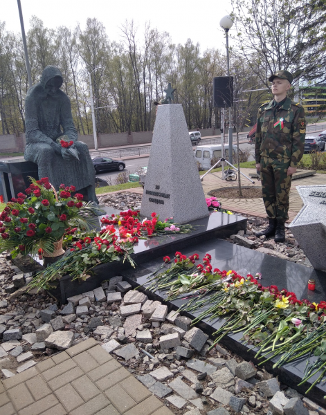 Ко Дню Победы в Великой Отечественной войне, первичная профсоюзная организация филиала «МГТС» РУП «Белтелеком» приняла участие в возложении цветов у мемориала «Память», который расположен на проспекте Дзержинского в Минске, как дань памяти павшим героям. Мемориальный комплекс расположен на месте братской могилы, в которой захоронены 35 советских воинов, погибших при обороне Минска в годы Великой Отечественной войны. Поисковая работа по установлению фамилий солдат была начата еще в 1980 году, но до сегодняшнего дня остаются неизвестными имена еще 24 бойцов. На могиле размещены 11 звезд, на которых вписаны установленные имена погибших воинов, и обелиск памяти 24 неизвестных солдат. Рядом с обелиском и аллеей из звезд установлена скульптурная композиция – образ пожилой женщины, сидящей у памятника, сжав в руках солдатскую пилотку, как символ матерей, не дождавшихся своих сыновей с войны и скорбящих у их могилок. Печать