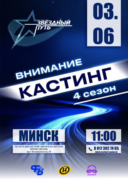 28 мая на кастинге телепроекта "Звездный путь" принимали участие члены первичной профсоюзной организации Гомельского филиала РУП "Белтелеком" Элина Сарженко и Анатолий Козубенко!!!Участие в проекте доставило массу впечатлений, волнение, ожидание и конечно эмоциональный выплеск в исполнении любимого музыкального произведения!Уже 3 июня кастинг в проект "Звездный путь" пройдёт в Минске!Если вам уже есть 18, вы член профсоюза умеете петь и не имеете музыкального образования, приглашаем Вас принять участие в кастинге!По всем вопросам обращайтесь в ваши первичные профсоюзные организации либо в Белорусский профессиональный союз работников связи, ответственное лицо Ольга Владимировна 8-017-270-94-43. Печать