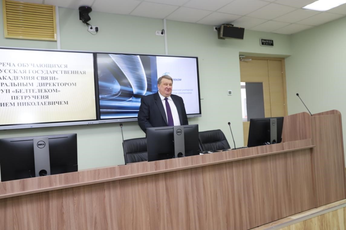 Генеральны дырэктар РУП «Белтэлекам» Юрый Петручэня сустрэўся са студэнтамі Беларускай дзяржаўнай акадэміі сувязі (БДАС). Ён распавёў будучым ІТ-спецыялістам пра перспектывы працы ў сферы сувязі і тэлекамунікацый, аб прафесійнай кампетэнцыі, якая спатрэбiцца на сучаснай вытворчасці.