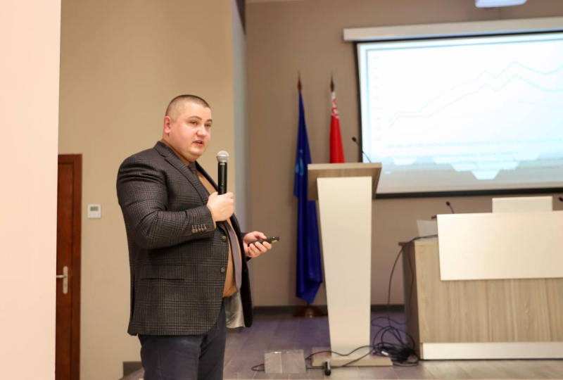 Перад працоўным калектывам прадпрыемства выступіў Андрэй Пілюцік, намеснік дырэктара Інстытута эканомікі Нацыянальнай Акадэміі навук Беларусі.