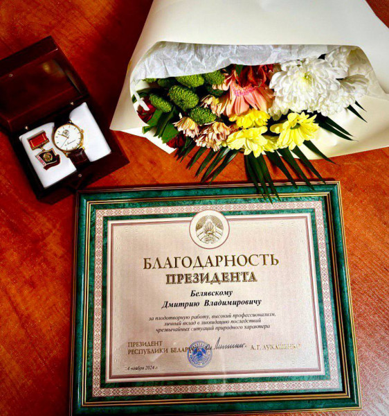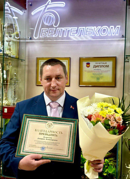 Председатель Брестского областного исполнительного комитета в торжественной обстановке вручил Дмитрию Белявскому, инженеру по ремонту и обслуживанию электропитающих установок связи Пинского ЗУЭС Брестского филиала РУП «Белтелеком», Благодарность Президента Республики Беларусь за плодотворную работу, высокий профессионализм, личный вклад в ликвидацию последствий ситуаций природного характера.