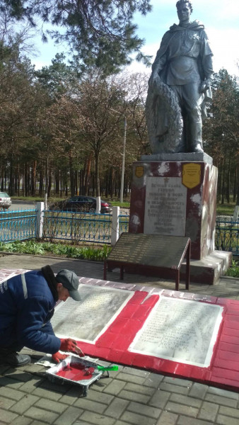 Членами коллектива Калинковичского ЗУЭС в преддверии Дня Победы приведено в порядок воинское захоронение по ул.Князева г.Калинковичи. Был окрашен постамент, побелены бордюры, восстановлены мемориальные плиты с фамилиями погибших воинов. Печать