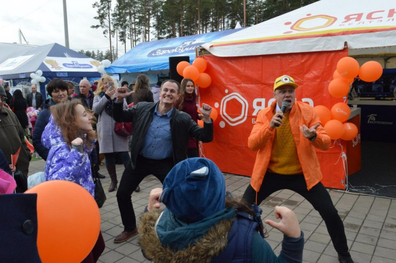 Также у подножия арены работали выставка-ярмарка, творческие площадки, подворья районов, «Город мастеров». Компания Белтелеком приняла активное участие в празднике. Возле имиджевого павильона «ЯСНА» было по-настоящему ясно и жарко. Всех посетителей павильона, а также просто прохожих, ждало масса сюрпризов от «Белтелеком»: огромное количество розыгрышей от ведущего, игры и танцы для детей и взрослых от аниматоров, фото с живой статуей «Золотой мужчина», аквагрим, попкорн и, конечно же, масса, масса подарков от бренда «ЯСНА».