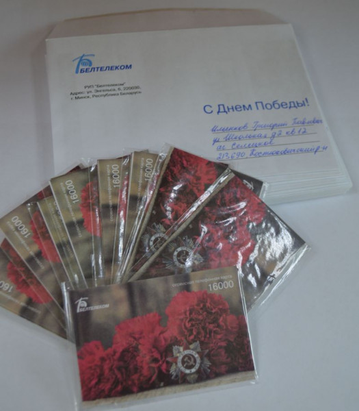 Так же участникам Великой Отечественной войны будет бесплатно предоставлена возможность осуществить местные, междугородные, международные разговоры по сервисным телефонным картам (СТК) номиналом 16000 тарифных единиц. Карты направлены адресатам почтой.