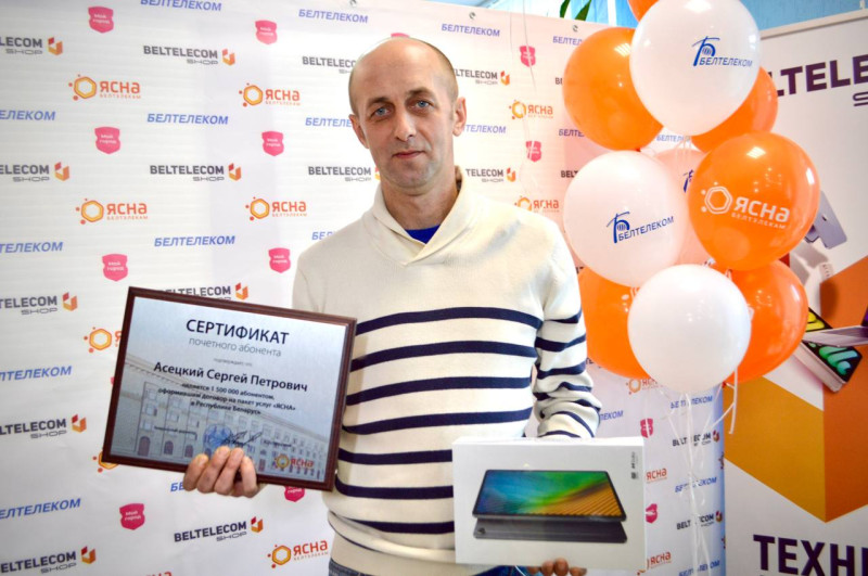 Юбилейным стал житель города Шклова Сергей Асецкий, который подключил в своем доме «ЯСНА 200 SMART». Сегодня он принимал поздравления в сервисном центре «Белтелеком».