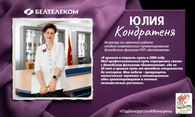 Знакомьтесь - Юлия Кондратеня, инженер по сметным расчетам отдела комплексного проектирования Витебского филиала РУП «Белтелеком».