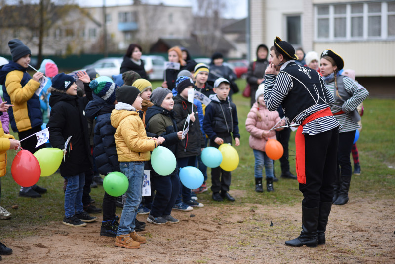 В честь важного для города и района события был организован мастер-класс от именитого спортсмена Евгения Жерносека - мастера спорта международного класса, участника Олимпийских игр (2012), бронзового призера чемпионата Европы (2011), неоднократного чемпиона страны по тяжелой атлетике. Также состоялась праздничная анимационная программа с участием костюмированных героев «Маша и медведь», пираты, музыкальные конкурсы, аквагрим, веселые эстафеты и танцевальные флэшмобы с детской вокальной группой «Неоткрытые острова», – все это ждало ребят на празднике двора.