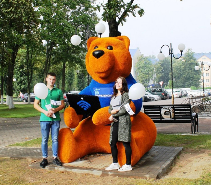 Арт-объект, который появился на площадке у офиса компании по проспекту Черняховского, жители Витебска оценили. Внушительного размера плюшевый медвежонок сразу привлек внимание. К тому же не осталось незамеченным то, что симпатичный мишка уже освоил новые технологии и пользуется беспроводным доступом в интернет.